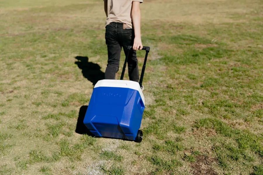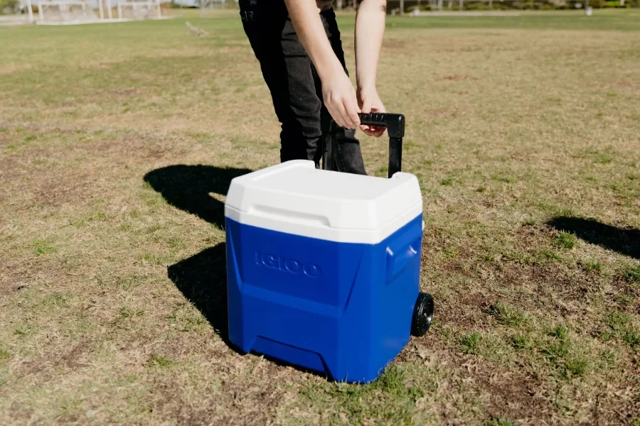 • Locking, telescoping handle enables cooler to be pushed or pulled