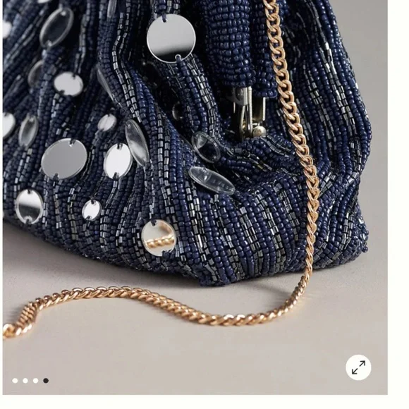 Anthropologie Mirror Beaded Clutch navy blue brand new summer 2024