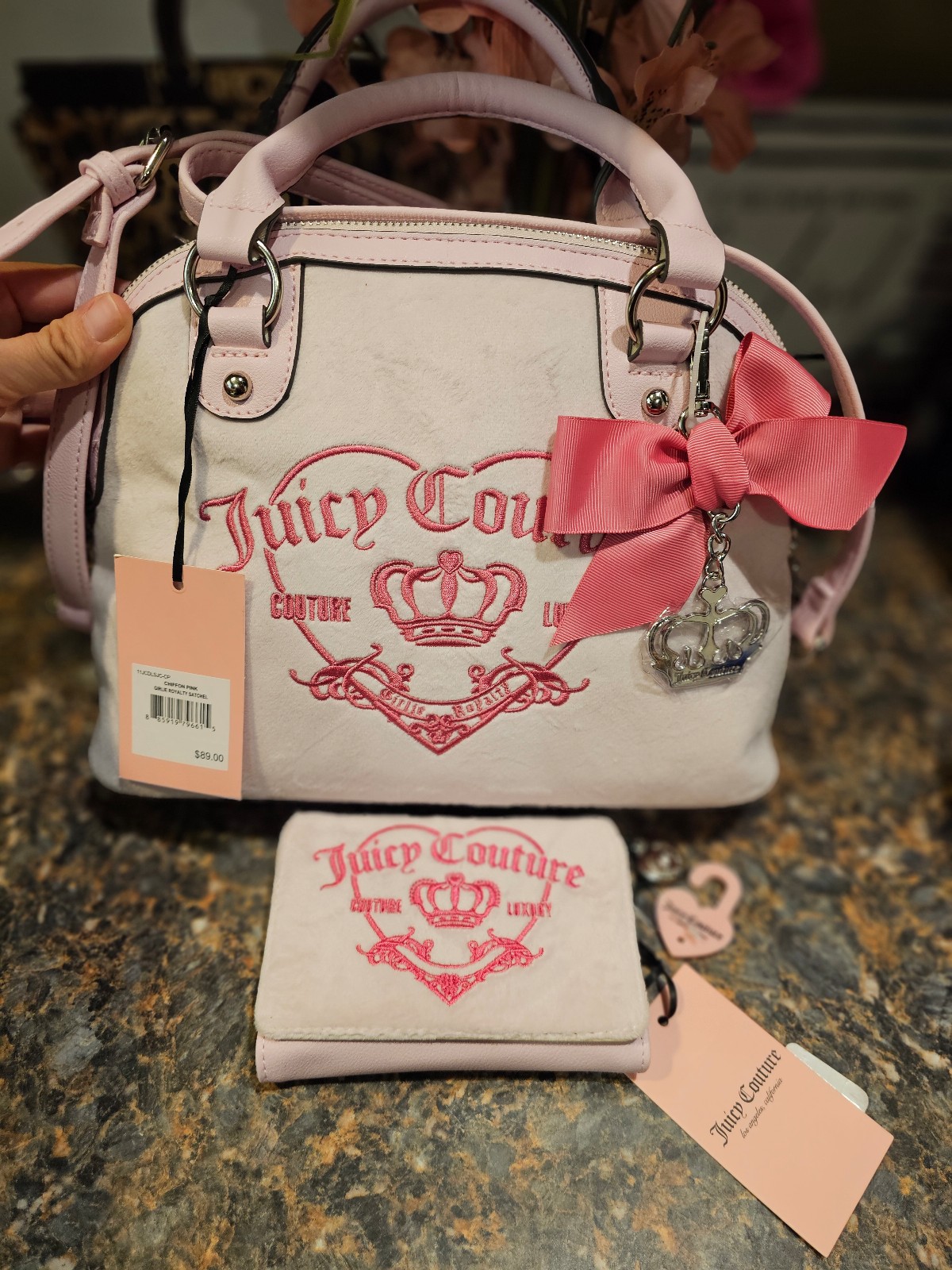 NWT Juicy Couture CHIFFON PINK VELOUR GIRLIE ROYALTY SATCHEL & Wallet