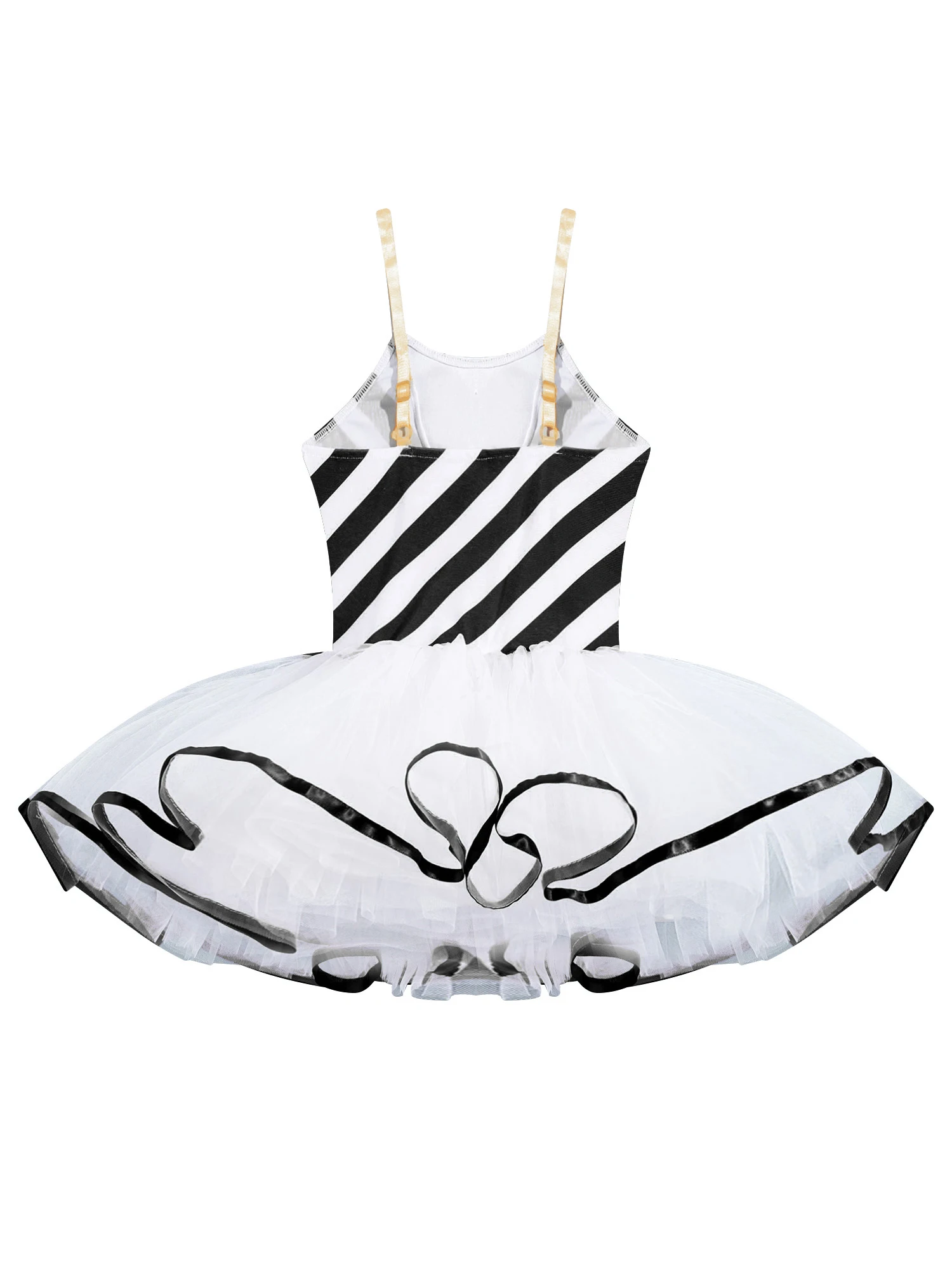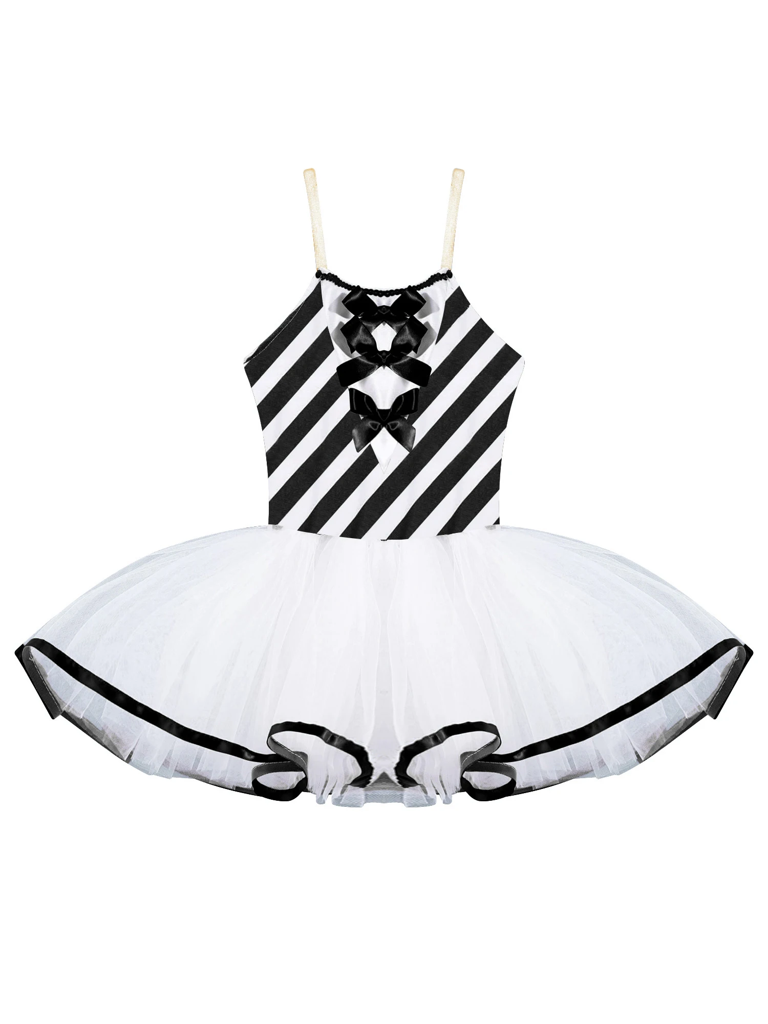 Adjustable straps, stripes print, bowknot adorned, mesh tutu dress, cami dress.