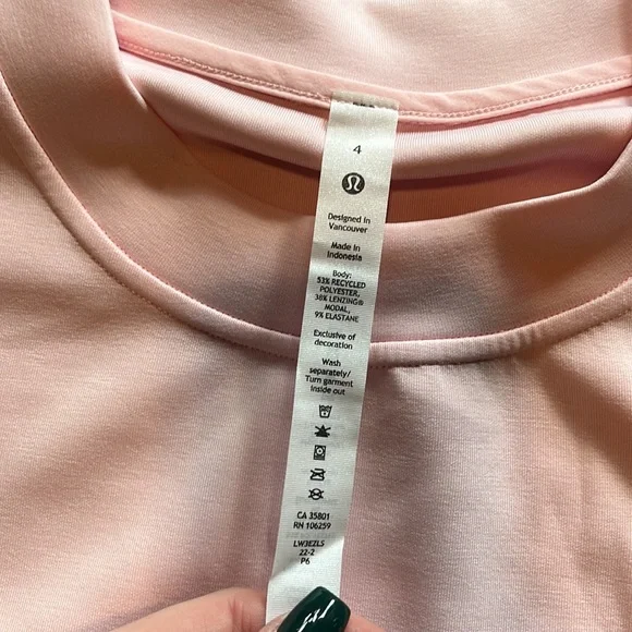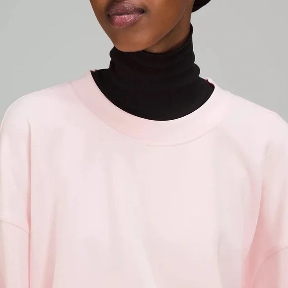 Lululemon Size 4 Strawberry milkshake Perfectly oversized crewneck SoftstremeSuper soft and comfy! SOLD OUT ONLINEAn exaggerated fit that feels extra roomyNot too short, not too long, just right around the waistbandPeach-fuzz soft textureFour-way stretchQuick-dryingFeels smooth next to skinWeighty drapeMachine washable804