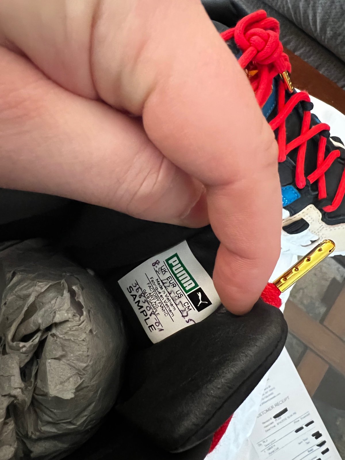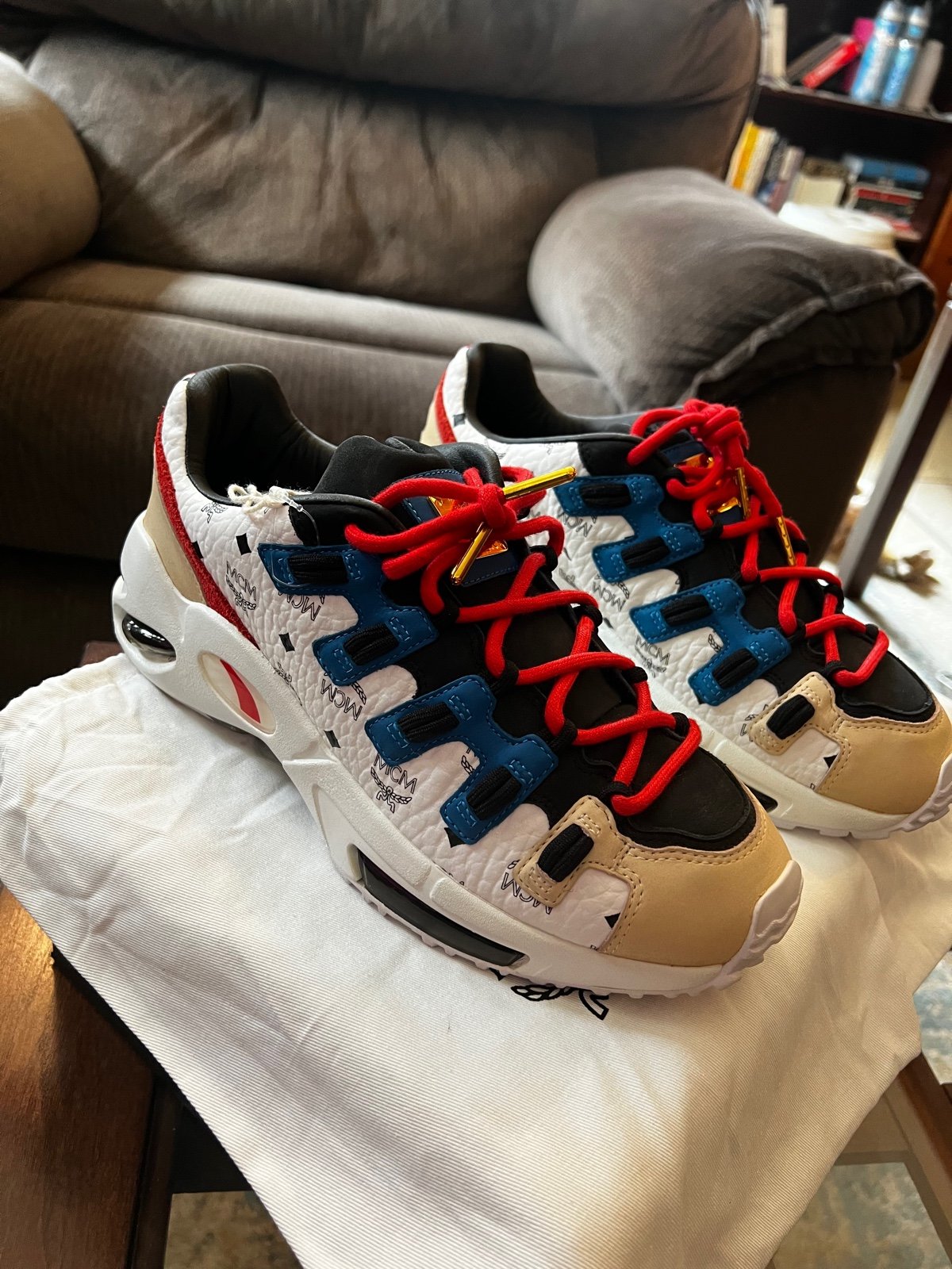 Extremely rare Luxury Sneaker Sample collaborated and produced by MCM x Puma that had a very limited size run! Everything pictured is included, as well as a salesman sample MCM box!
