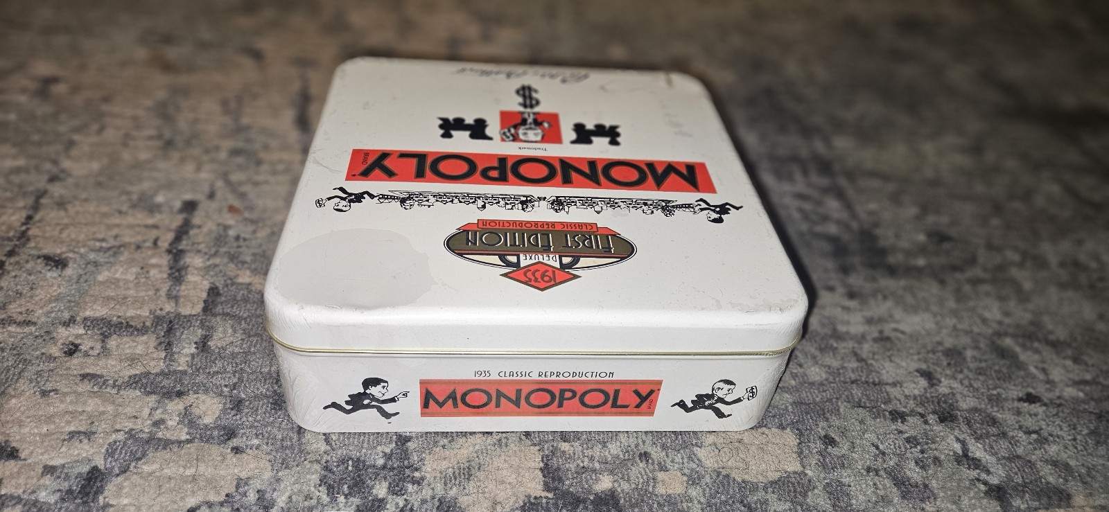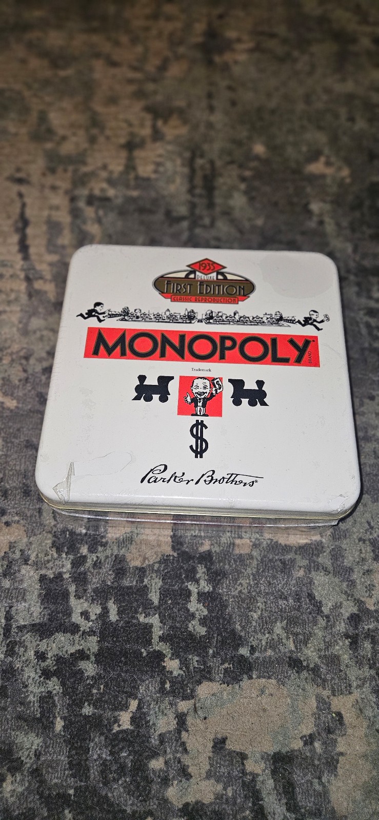 The product is a deluxe first edition reproduction of the classic board game Monopoly by Parker Brothers, released in 2002. This complete game is recommended for 8 years and up, and can be played by 2 or more players. Packaged in a tin box, this new and sealed version of Monopoly features the timeless finance theme that appeals to both boys and girls. Perfect for board game enthusiasts looking to enjoy the nostalgia of this iconic game in a high-quality reproduction.