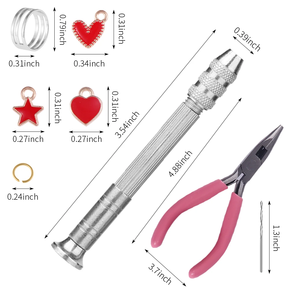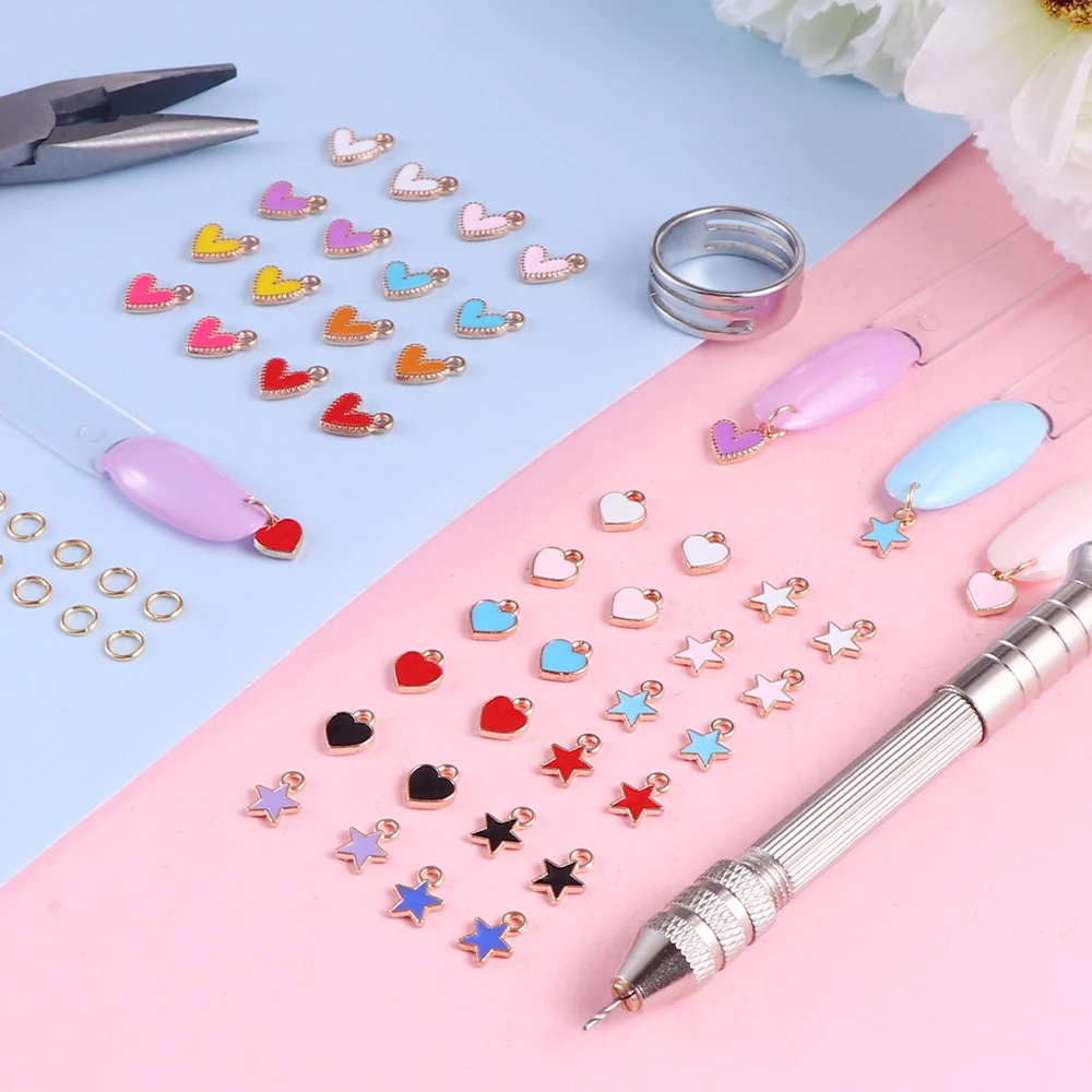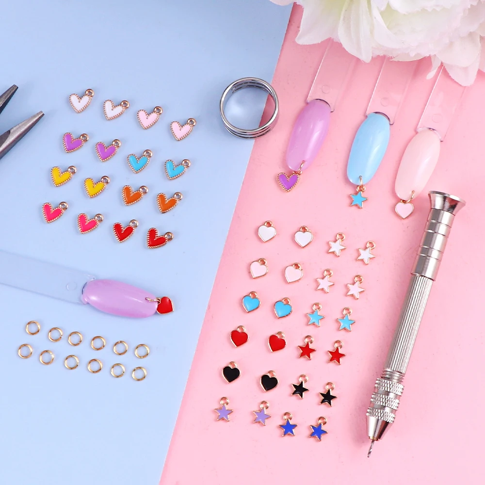 【Nail Art Dangle Charms Set】About 900pcs 6mm jump ring(with 7 grids plastic organizer case ), 1pcs stainless steel jump ring opener, 1pcs high quality pink needle nosed pliers, 1pcs nail piercing tool, 10pcs 1mm piercing needles.