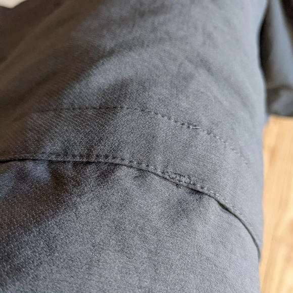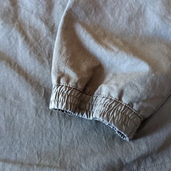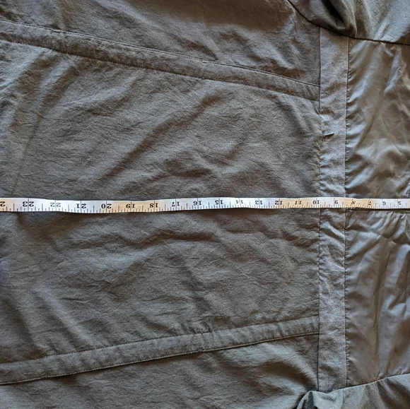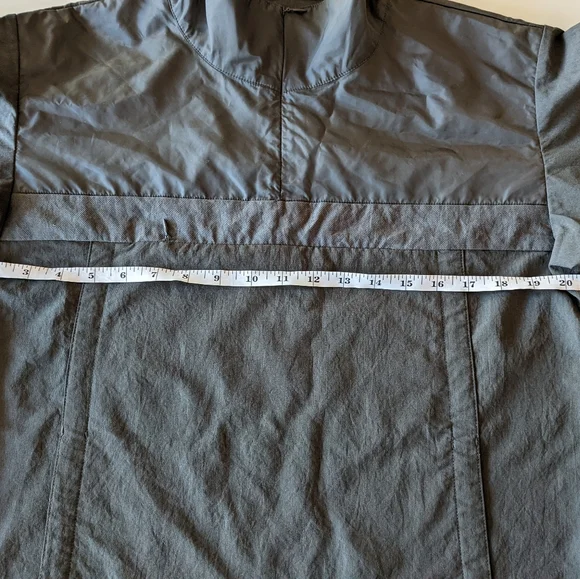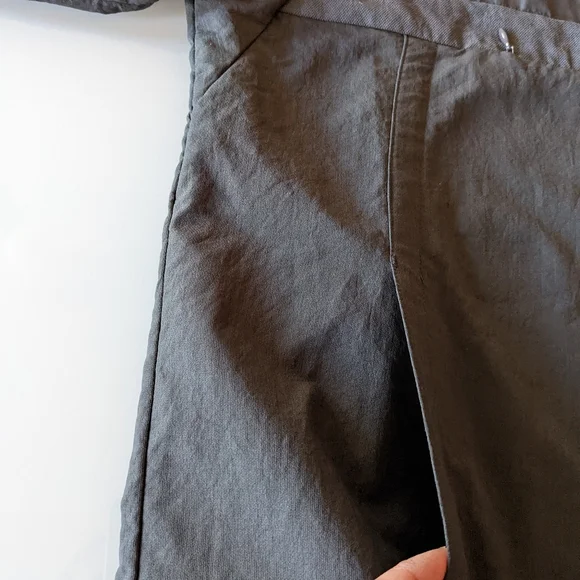 In NWOT condition. Only tried on for fitting. Runs smaller than US size small.Please see the measurements in pictures.Hard to capture the color but is steel gray. The fabric appears wrinkled but it's the intended look. All the zippers are 'concealed' which means when closed, you don't see the zipper teeth. There are two side pockets, one concealed pocket with zipper at the chest. Drawstring details at the hem.* Since there was no brand tag on PM, I borrowed Patagonia tag.