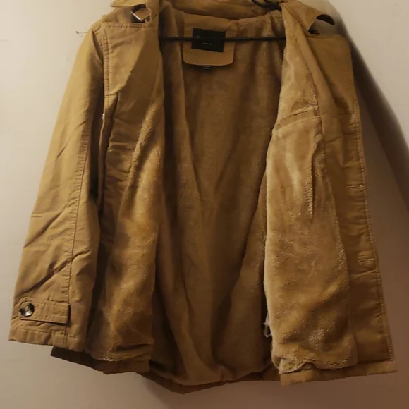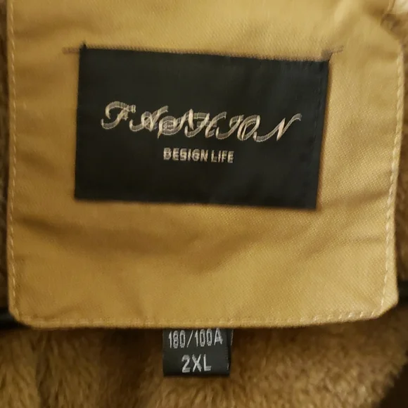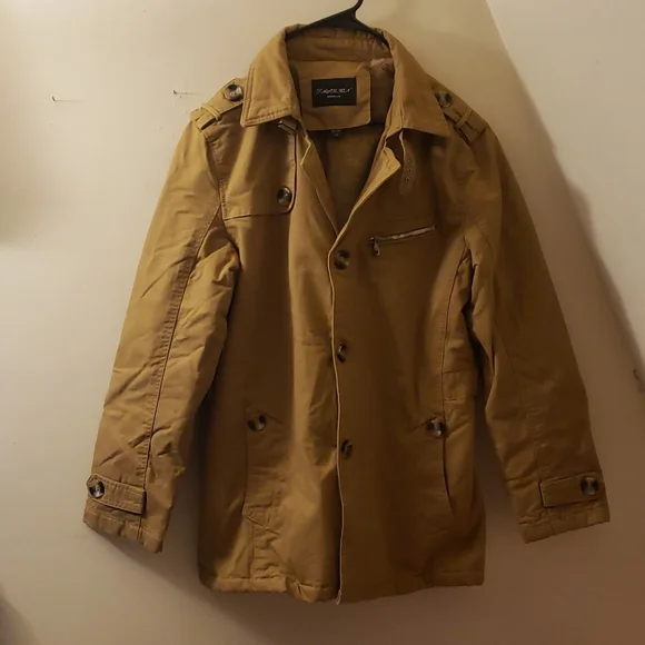 NWOT Fashion Design Life Mens Single Breasted Fleece Lined Winter Trench Coat,Asian size 2XL = US Size XL, Camel.Features: mid-length, long sleeve, fold down collar, lapel, single breasted, multiple pockets, soft warm liner. Superior tailoring workmanship with clear and neat machine stitching line, wear-resistant and durable protecting you from cold weather.Comes with an extra button sewn on tag.Approx. Measurements:Pit to Pit- 22"Length- 29"Cotton, Polyester Recommended hand wash or machine wash separately and hang to dryNew