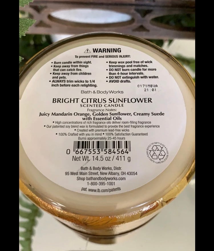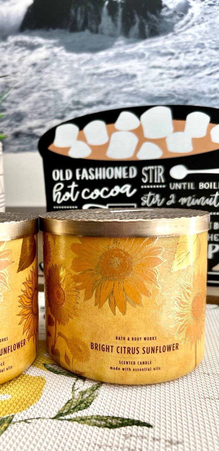 One (1) Brand new 3-wick candle from Bath and Body Works Bright Citrus Sunflower candle.