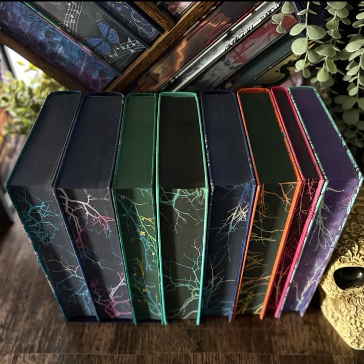 These books feature matte naked hardbacks, reversible foiled dust jackets, end page artwork, & detailed stenciled edges.