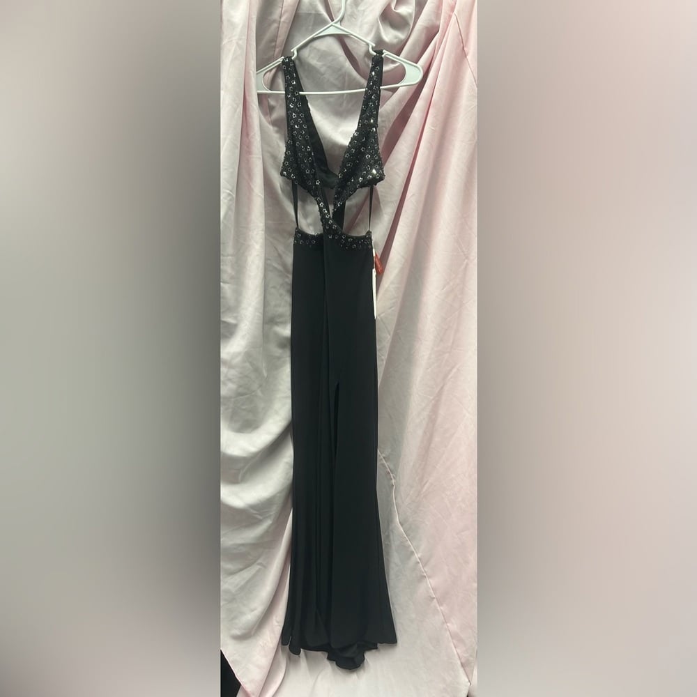 Dainty floral sequins dot the top of a chic gown fixed with a deep V-neckline, side cutouts, and a high slit. Embellished sleeveless shoulders form an X at the back, leaving plenty of space to show off shimmer-brushed skin. Take a cue from our model and pair the gown with transparent heels.
